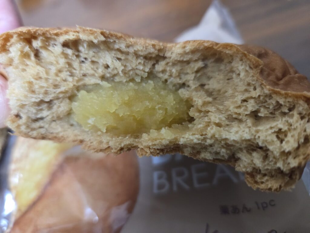 一口食べてみると、パン生地はベースブレッドらしい全粒粉の風味がありつつ、いつもよりしっとり。中の栗あんは、ねっとりしすぎず、ほどよくなめらかで、甘さも上品。